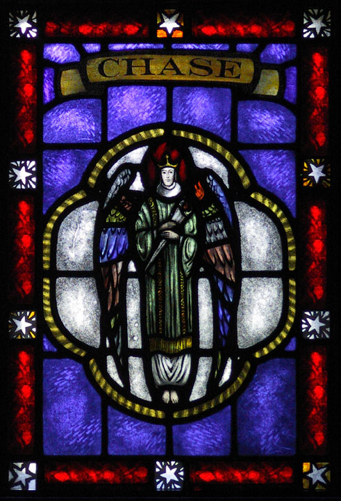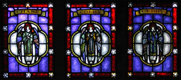 Windows created for this client based on Gothic Medieval windows he had seen while visiting Europe. The subjects were his three sons.